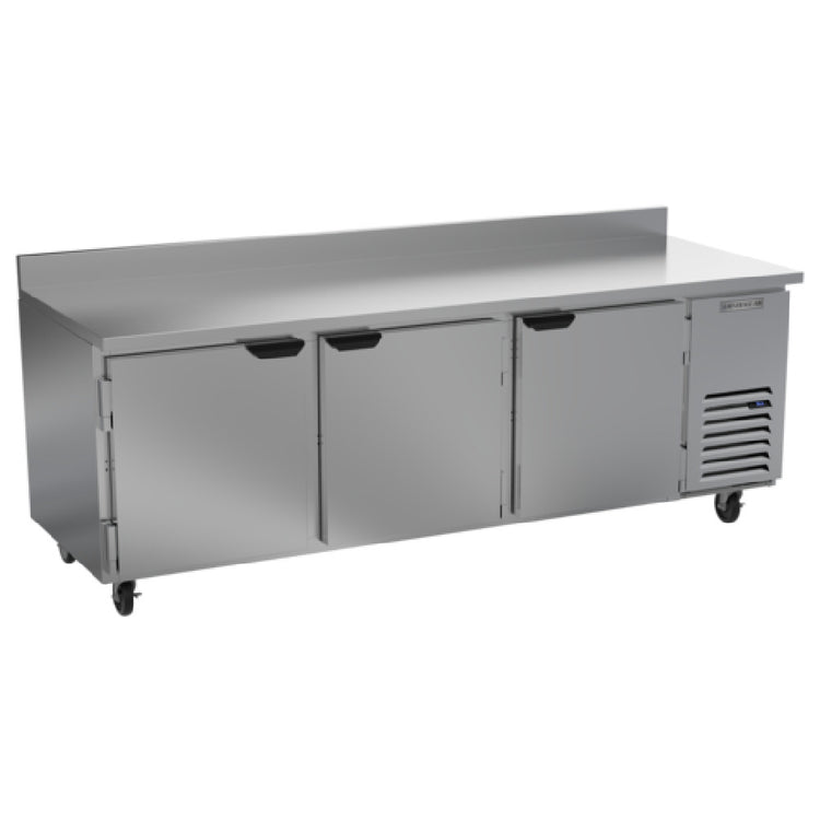 Beverage Air, WTR93AHC, Worktop Refrigerator, three-section, 93"W, 29.7 cu. ft., (3) solid doors, (6) shelves, stainless steel front, 2-1/2" thick top & sides, aluminum interior, 4" H built-in backsplash, side-mounted self-contained refrigeration, R290 Hydrocarbon refrigerant, 1/3 HP, cULus, UL EPH Classified, UL-Sanitation, Made in USA