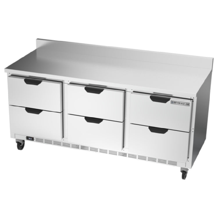 Beverage Air WTRD72AHC-6-FIP 72 Inch Three Section Worktop Refrigerator 17.88 cu ft with 6 Drawers and Stainless Steel Finish