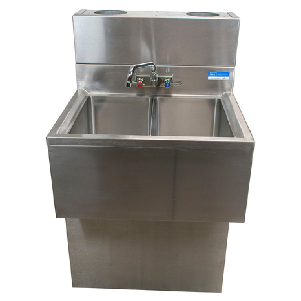 The UBDW-18-236RS underbar sink offers dual 10" x 14" compartments designed for efficient washing and rinsing workflows in bars and kitchens. Its stainless steel surface provides durability against daily use and easy sanitizing. The integrated drainboard enhances efficiency by simplifying utensil and glassware cleanup, while the splash mount faucet ensures precise water delivery. Easy-to-maintain, rugged construction supports high-traffic operation, fitting seamlessly into undercounter or bar stations for improved workflow.