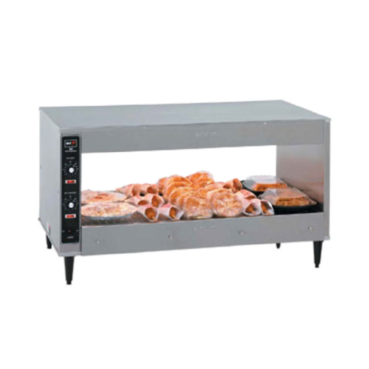 BKI (Middleby), SM-39, Sandwich Warmer, 39", pass-thru, (1) shelf, countertop, standard pan size, individual thermostatic controls, slot dividers, ceramic infrared top heat, bottom wire shelf, stainless steel construction, 4" legs, ETL, cETL