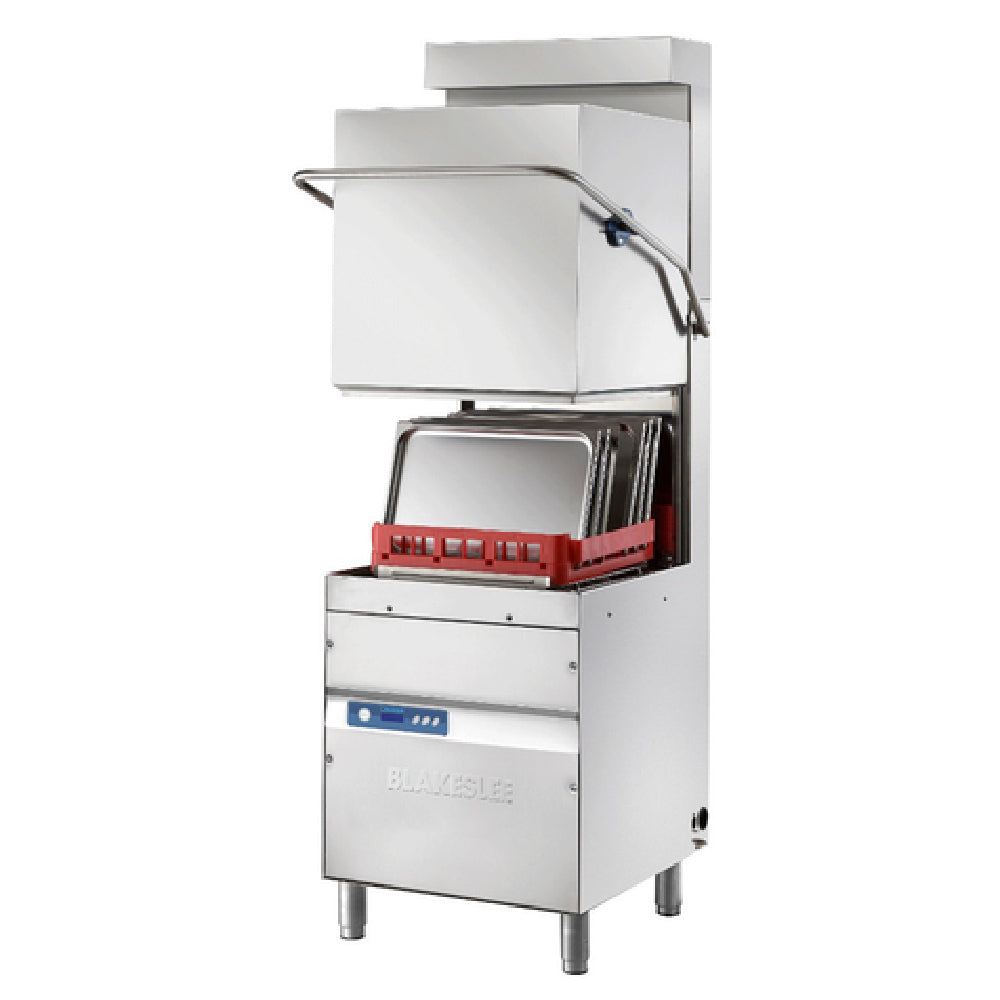 The Blakeslee D-18V-3 Dishwasher Hood Type 28-3/8"W is a commercial-grade, ventless dishwasher engineered for high-efficiency sanitation in busy foodservice environments. Designed with a stainless steel construction, it features a 28-3/8-inch width configuration optimized for streamlined installation in commercial kitchens. This industry-standard unit employs high-temperature Perfecta-Rinse™ sanitizing at 180°F, supported by a 9kW booster heater, ensuring compliance with rigorous hygiene protocols. Equipped with front-mounted digital controls, dual revolving spray arms, and a triple filter system, it delivers up to 30 racks per hour, making it suitable for multi-shift operations. Its self-contained design enhances safety and ease of integration into existing kitchen workflows, minimizing downtime and maintenance needs with built-in heat recovery and detergent & rise-aid pumps. The 316 stainless steel deep-formed tank and 2.7kW electric tank heater guarantee durability and consistent performance under demanding use cases in commercial foodservice settings.