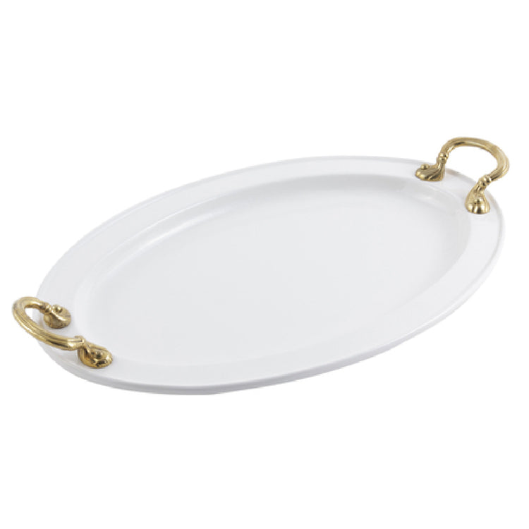 Bon Chef 2045HRIVY 14-1/4 Inch Oval Serving Tray with Round Handles Aluminum Sandstone