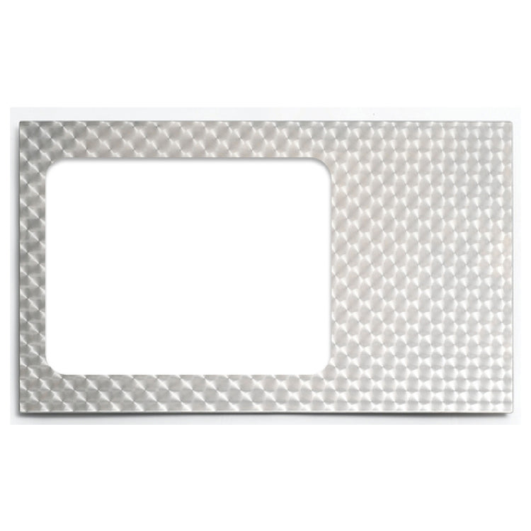A commercial tile inset is a fixture made of durable metal, typically stainless steel, designed to seamlessly integrate into foodservice surfaces or equipment. The Bon Chef 52109-1-60013-F is a full-size stainless steel inset measuring 12-3/4" x 20-13/16", featuring a circular pattern to fit specific front panels. It is used in busy kitchens, food counters, and service stations to provide a hygienic, impact-resistant surface covering that maintains operational flow and sanitation standards for mid-volume restaurant or institutional settings.