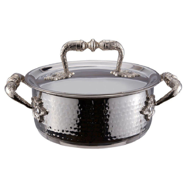 Bon Chef, 60000BELLISSIMO, Cucina Casserole Dish, 3 qt., 8-5/8" dia. x 3-1/4"H, (2) 1-1/8" square handles, with lid, induction bottom, stainless steel, bellissimo finish