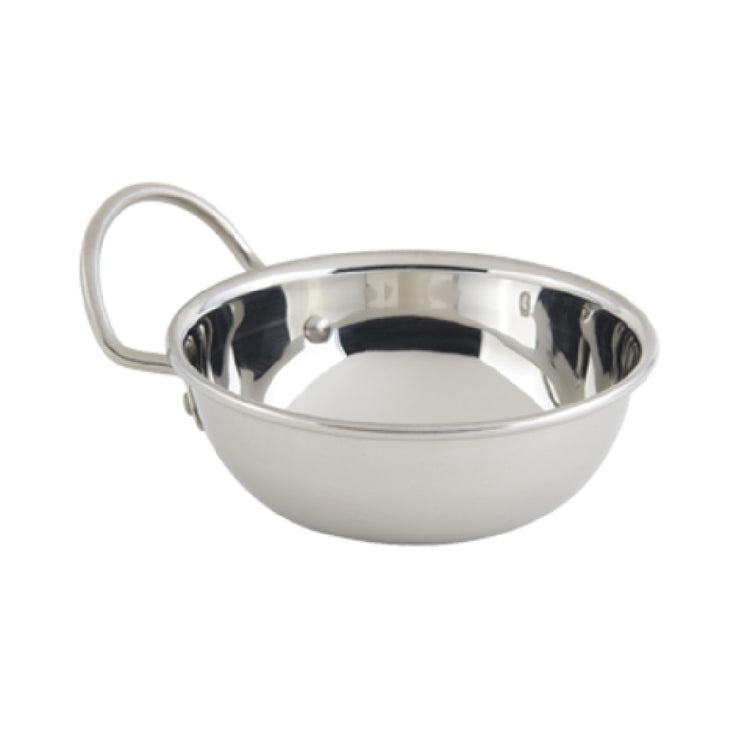This miniature casserole offers chefs and foodservice operators a compact, stainless steel solution for precise portion control and presentation. Its 9 oz. capacity and corrosion-resistant material make it suited for countertop dishes, entrees, or side servings. Designed for ease of handling and cleaning, it supports efficient workflow in busy kitchens. The loop handle provides ergonomic grip, and its durable construction withstands daily use in commercial environments ensuring longevity and consistent performance.
