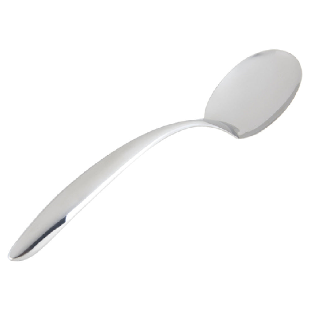 A commercial banquet serving spoon is a heavy-duty utensil designed for professional foodservice operations to facilitate precise portioning and efficient serving of dishes in large-scale settings. Typically constructed from durable stainless steel, these spoons feature ergonomic handles and bowl sizes optimized for high-volume use. The Bon Chef 9457 EZ Use Banquet Serving Spoon is suited for banquet halls, catering, and institutional kitchens, providing reliable performance and ease of cleaning, making it highly suitable for high-capacity food presentation and distribution in banquet service environments.