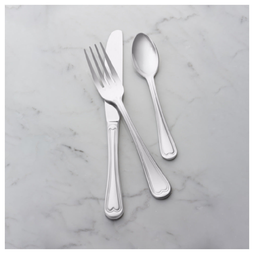 The Bon Chef S606 Victoria European Dinner Fork is built from premium 18/10 stainless steel, ensuring durability and resistance to staining or corrosion. It measures approximately 8.15 inches in length, with a weight of 1.9 pounds per dozen sets, supporting prolonged service without compromising strength. Its polished finish not only enhances aesthetics but simplifies cleaning and sanitization. The fork is designed for use in commercial dishwashers, handling typical high-temperature washing cycles. Constructed with precision, it features a standard dinner fork profile suitable for upscale restaurant, hotel, or catering applications. The product's dimensions and material specifications are optimized for ease of handling and extended lifespan in frequent-use scenarios. Its straightforward design and high-quality materials make it suitable for continuous professional service in demanding foodservice settings.