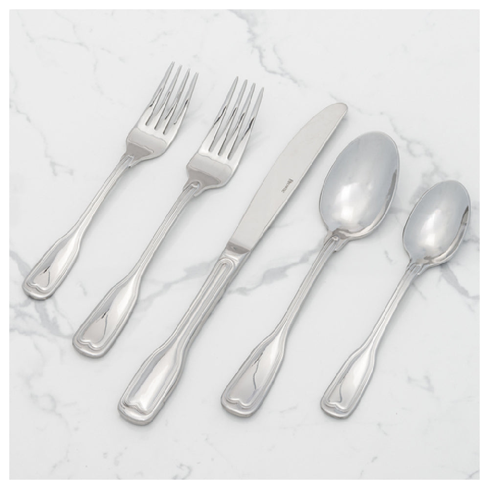 A commercial teaspoon is a standardized small utensil used for precise measurement and serving in professional foodservice settings. Made from durable stainless steel, such as 18/0 grade, these teaspoons are often set in multiples for consistency across large-scale operations. The Browne Foodservice 502223 Lafayette Teaspoon is installed in cafeterias, catering stations, and upscale dining environments, where uniform portion control and presentation are essential. It is ideal for applications requiring moderation in serving sizes and efficient workflow in busy kitchens.