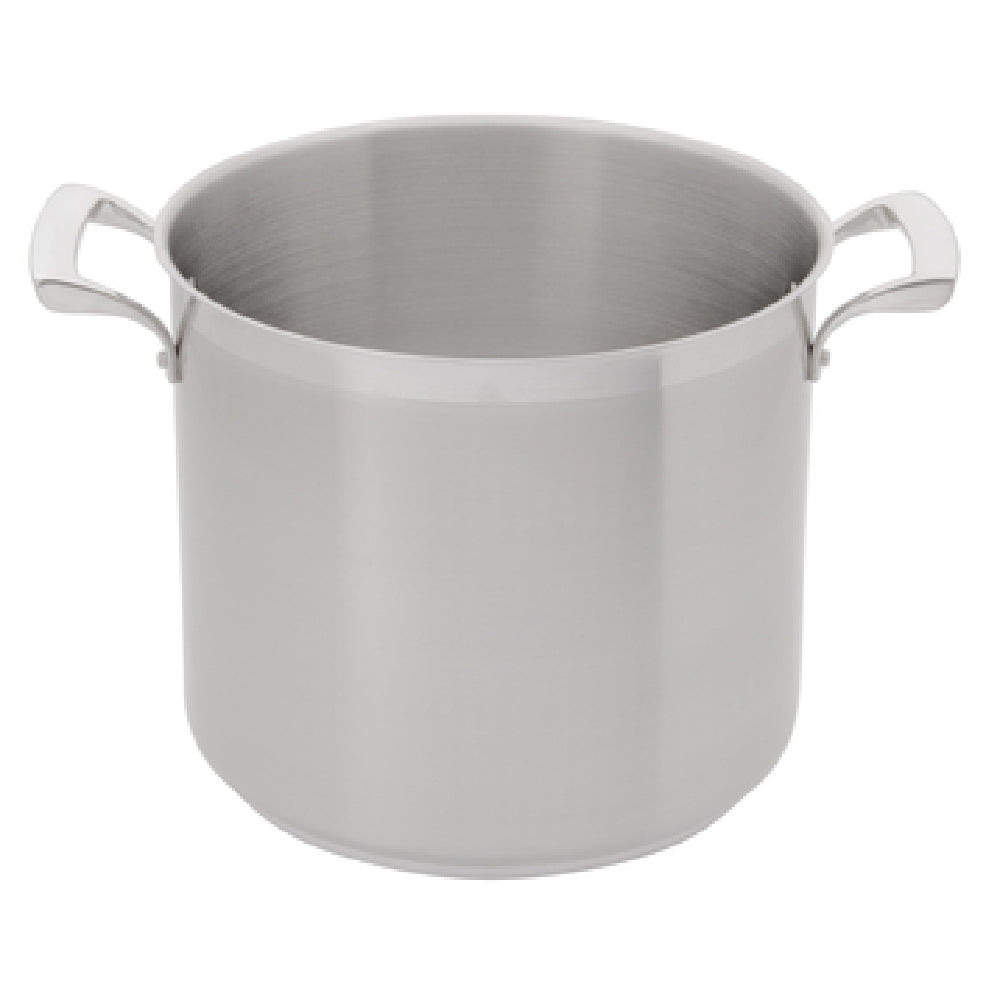 The Browne Foodservice 5723912 Thermalloy® Stock Pot offers seasoned performance for commercial foodservice, with durable stainless steel and aluminum core for even heat distribution. Designed with oversized stay-cool handles for safety, its easy-to-maintain surface suits high-throughput kitchen workflows, making it suitable for stock, broth, and large quantity preparation in professional kitchens.