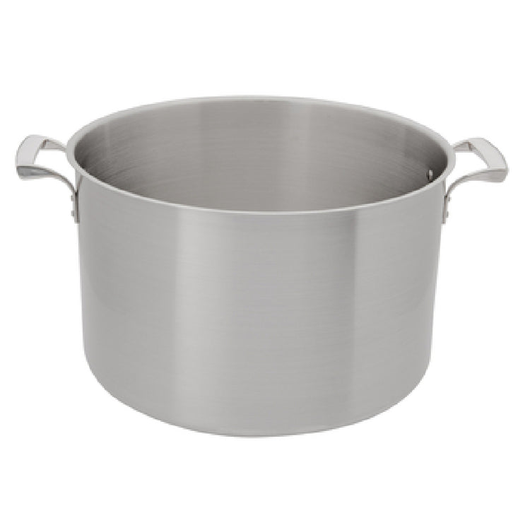Browne USA Foodservice, 5723960, Thermalloy® Stock Pot, 60 qt., 19-1/2" dia. x 12-1/2"H, deep, without cover, (2) oversized stay cool hollow cast riveted handles, operates with gas/electric/ceramic/halogen/induction, stainless steel with 1/4" aluminum core, natural finish, NSF