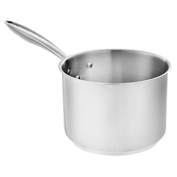 Browne USA Foodservice, 5724032, Thermalloy® Sauce Pan, 2 qt., 6-3/10" x 3-4/5", deep, without cover, stay cool hollow cast riveted handle, operates with gas/electric/ceramic/halogen/induction, stainless steel with 1/4" aluminum core, natural finish, NSF (cash & carry packaging)