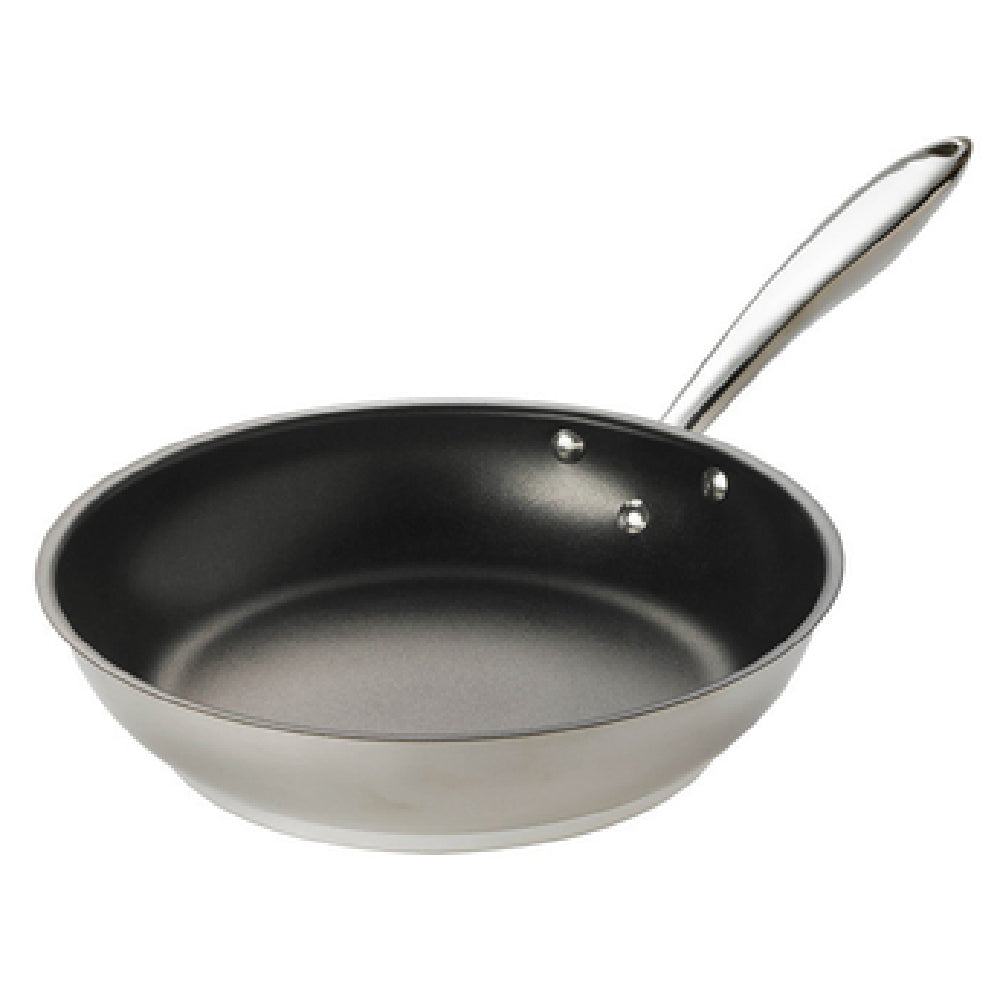 The Thermalloy® Deluxe Fry Pan provides excellent thermal responsiveness with a stainless steel exterior and aluminum core, minimizing hotspots and ensuring even cooking. Its stay-cool hollow cast riveted handle enhances safety and maneuverability under high-volume conditions. Designed for durability, the coated surface facilitates quick cleaning and food release, reducing downtime. Its induction-ready compatibility extends its utility to modern, versatile kitchen setups, while the robust construction withstands frequent use in demanding foodservice settings. With its precise dimensions and ergonomic features, it supports workflow efficiency, making it ideal for medium-volume cooking applications.