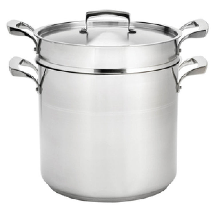 The Thermalloy® Double Boiler Set provides reliable, even heat transfer with a durable stainless steel and aluminum construction tailored for commercial foodservice. Its 16 qt. capacity and induction-ready design support moderate throughput tasks like delicate sauces or precise melting, facilitating batch processing and consistent results. Easy-to-clean solid insert and oversized stay-cool handles optimize workflow, minimizing downtime during busy service periods. Designed for versatile installation and compatibility, this set supports various cooking setups, ensuring seamless integration into existing kitchen operations. Its sturdy, stainless steel finish withstands frequent use, while maintaining nutritional safety standards for consistent culinary output.