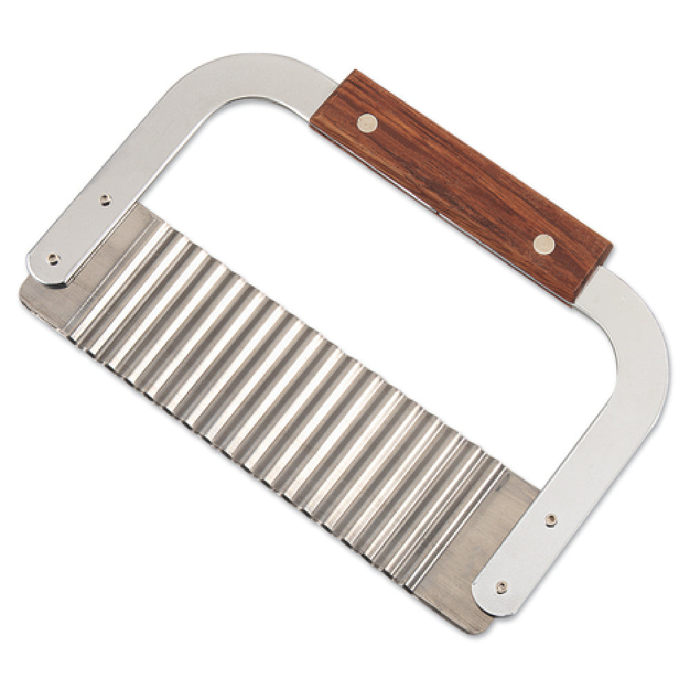 The Browne Foodservice 574309 serrator features a stainless steel corrugated blade measuring 7 inches by 2 inches, mounted onto a durable hardwood handle designed for long-term use. The entire tool weighs approximately 0.36 pounds, providing a lightweight yet sturdy profile suitable for frequent handling. It requires no electrical connection or specialized maintenance—simply hand wash and dry after use. Crafted from food-safe materials with Proposition 65 compliance, it withstands typical kitchen environments, with an operating temperature range compatible with standard culinary settings. The blade design allows for controlled, scalloped cuts, making it an essential component in garnishing and food presentation workflows.