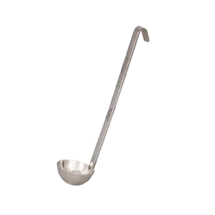 The Browne Foodservice 574702 ladle features a two-piece construction with a hooked handle for secure grip and stability. Made from heavy gauge stainless steel, it provides exceptional durability and corrosion resistance for daily commercial kitchen use. Its precise 2-ounce capacity is ideal for portion control in high-throughput settings, while the satin finish simplifies cleaning and sanitation. The ergonomic handle design enhances ease of use during continuous service, fitting seamlessly into professional warewashing routines. Perfect for use in buffet lines, soup stations, and catering environments where efficiency and hygiene are paramount.
