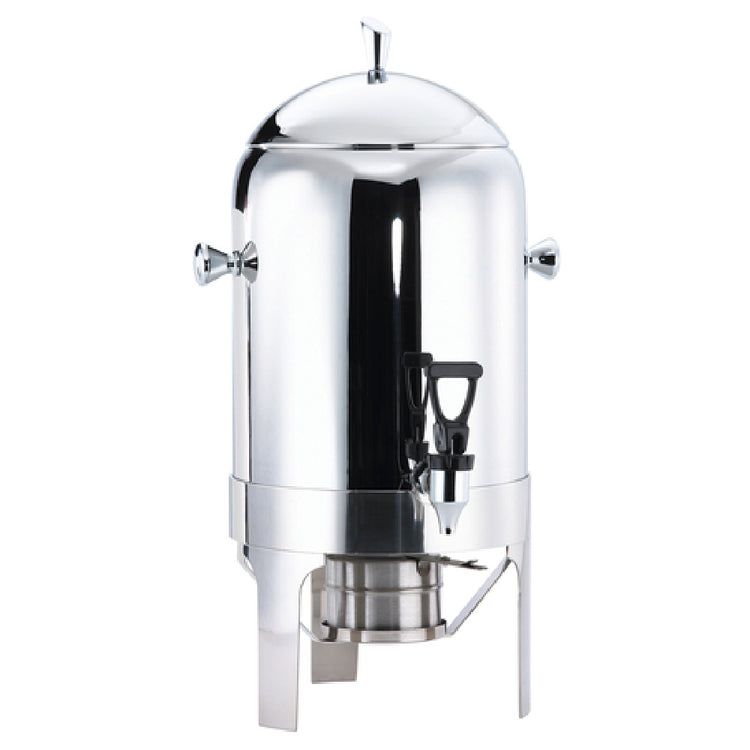 The Browne Foodservice 575178 Harmony Coffee Urn operates as a self-contained unit powered by canned heat, with an overall height of 20 inches, width of 12 inches, and depth of 12-1/2 inches. Weighing approximately 15.43 pounds, its stainless steel finish ensures durability and corrosion resistance. The unit is designed for safe, efficient hot beverage service, featuring a fuel cup holder and removable faucet for straightforward cleaning. Its construction complies with standard food safety practices and offers consistent performance under moderate workloads typical of institutional or catering environments. The product accommodates standard installation clearances and airflow, facilitating efficient heat retention and sanitation routines.
