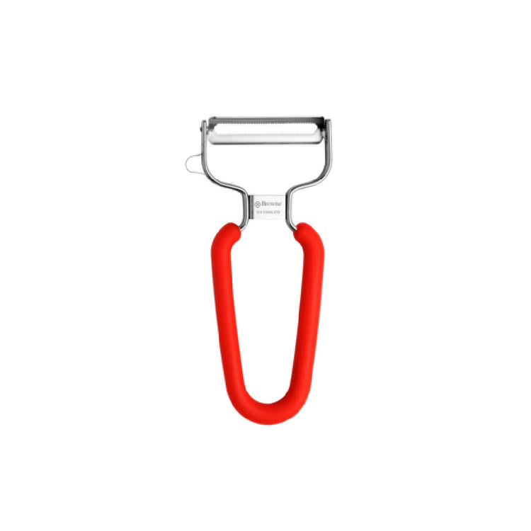 Browne USA Foodservice, 575431, Y Peeler, dual serrated blade with blade protector, integrated side cutter, soft TPE coated handle, Japanese stainless steel blade (Packed By: 144 Each Per Case)