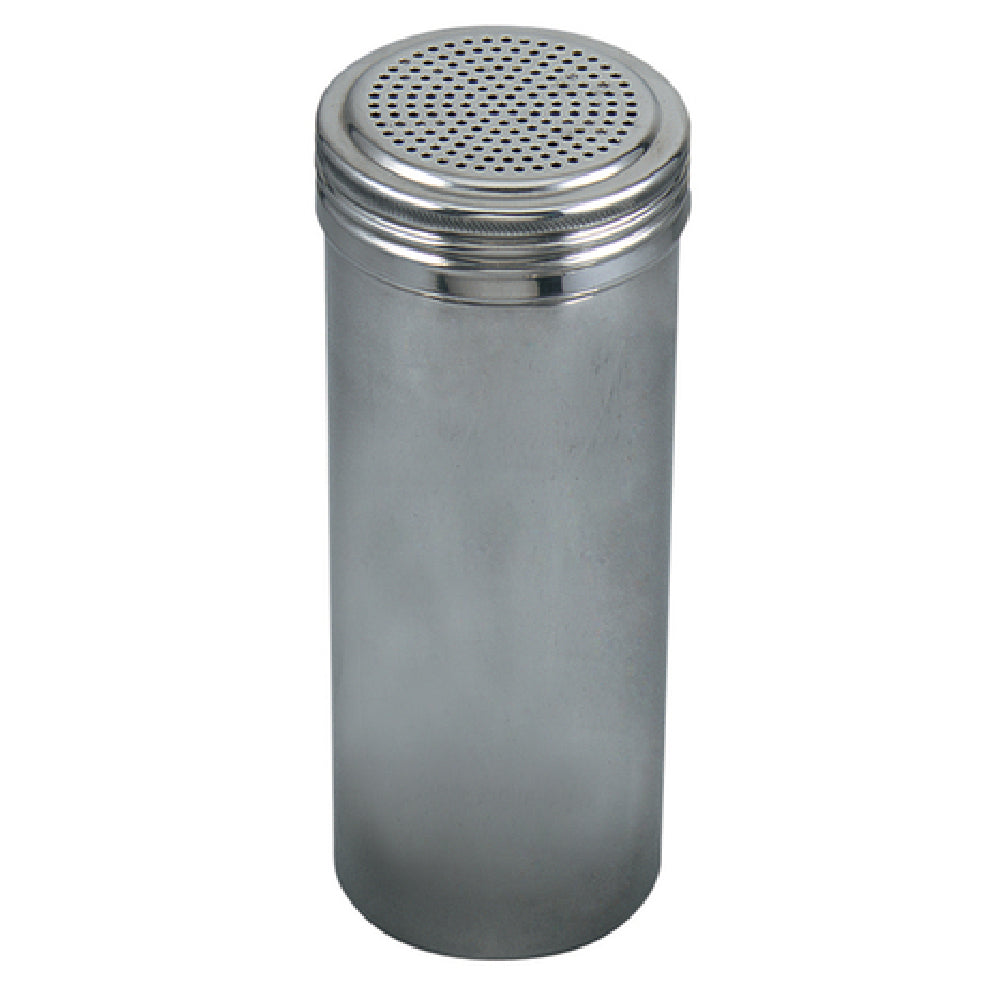 The Browne Foodservice 575675 Dredge features a stainless steel construction with a polished finish for enhanced durability and ease of cleaning. Its dimensions measure 2-3/4" in diameter and 7-1/2" in height, supporting a 22 oz. capacity suitable for commercial applications. The perforated lid with 1.9 mm holes ensures controlled dispensing, while the unit’s weight of 0.44 lbs facilitates handling and refilling. It operates without electrical requirements, making it compatible with standard kitchen setups. Designed for consistent performance in busy culinary environments, it withstands frequent cleaning and handling. The unit's food-safe stainless steel is compatible with standard cleaning routines, requiring disassembly for thorough sanitation. Its sleek, polished surface resists corrosion and stains, providing a restaurant-ready presentation suitable for backsplash or countertop placement. The dimensions and weight support easy integration into countertop stations and condiment stations with standard clearance and airflow considerations.