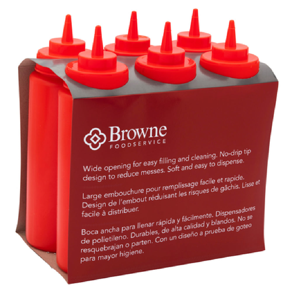 Browne Foodservice 57803305 32 Oz Red Squeeze Bottle Set of 6 with No Drip Tip - 1/Set