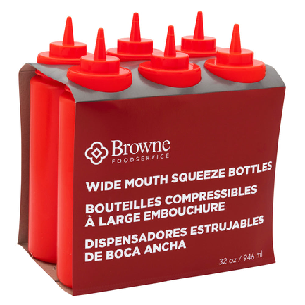 Browne USA Foodservice, 57803305, Squeeze Bottle, 32 oz., wide mouth, no drip tip, polyethylene, red (set of 6) (cash & carry packaging)