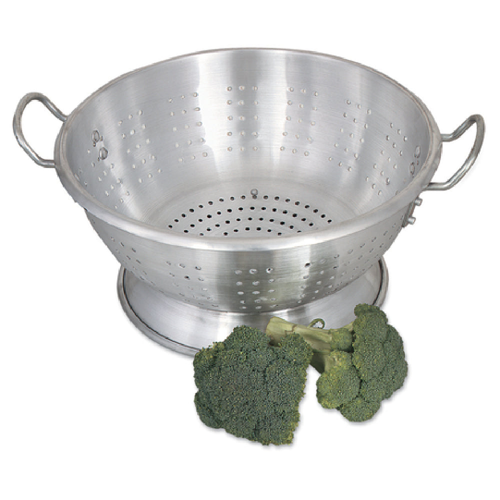 Designed for high-volume food preparation, the Browne Foodservice 5811611 colander offers robust aluminum construction, large capacity, and ergonomic handles, making it suitable for busy commercial kitchens and institutional foodservice operations. Built for reliable performance, it supports medium workload throughput, facilitating ingredient rinsing, draining, and prep workflows efficiently.