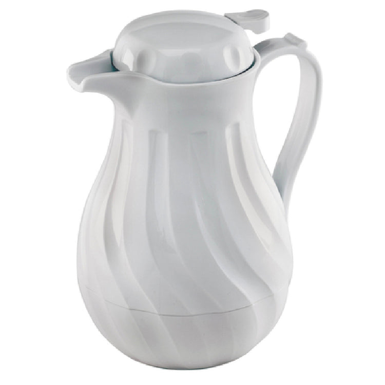 Browne Foodservice 744228 64 Oz Beverage Server with Thumb Lever and White Polycarbonate