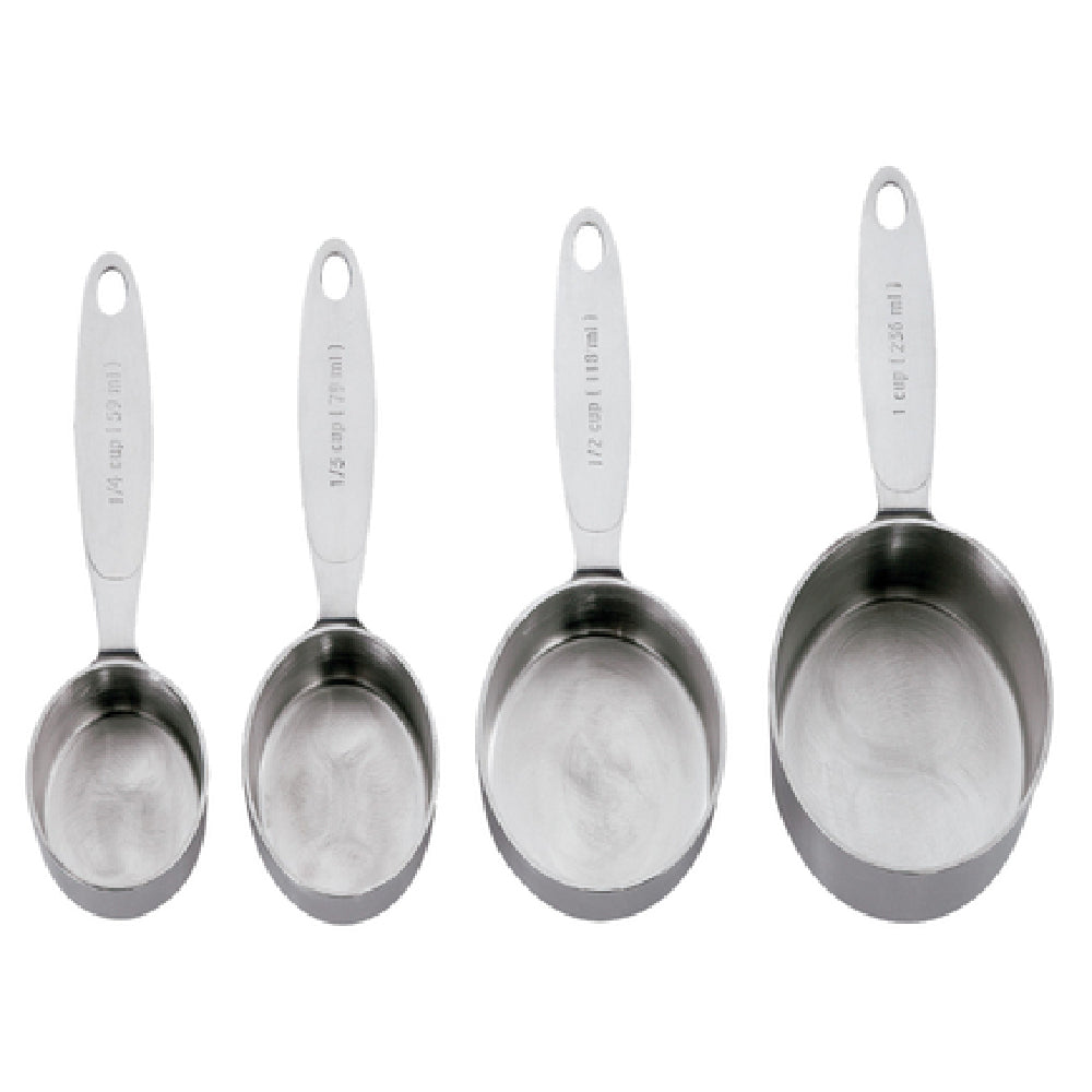 Designed with high-quality stainless steel and an ergonomic oval shape, this measuring cup set provides long-lasting durability and precise measurement for demanding foodservice applications. Its nesting feature optimizes storage space, while engraved markings ensure clarity in fast-paced environments. The set’s robust construction and reliable performance make it a preferred choice over standard plastic or lightweight alternatives, enhancing operational efficiency and accuracy in commercial kitchens.