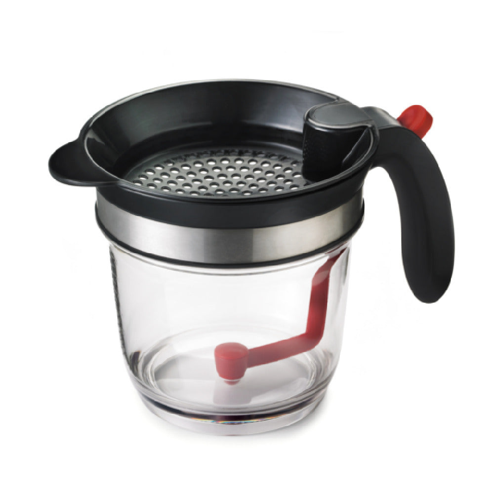 The CUISIPRO Fat Separator Deluxe delivers professional-grade fat separation with durable Tritan construction and a 4-cup capacity, suitable for medium-volume kitchens. Its ergonomic design with an "Easy Drain" valve streamlines workflow, while the oversized basket enhances separation efficiency. Easy disassembly and dishwasher compatibility facilitate quick cleaning, ideal for restaurant and catering operations seeking reliable, hygienic equipment.