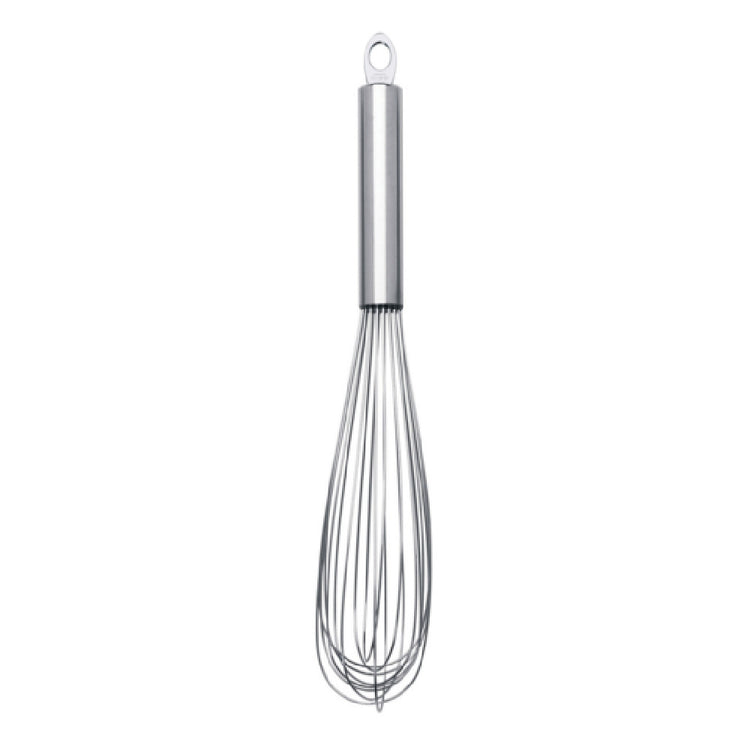 The CUISIPRO Egg Whisk provides a combination of durability and functionality tailored for commercial kitchens. Crafted with stainless steel wires and ergonomic handles, it enhances mixing efficiency while withstanding rigorous daily use. Its rust-resistant build ensures maintained hygiene standards, and its dishwasher-safe feature facilitates quick cleanup. Ideal for whisking eggs, batters, and sauces in high-volume foodservice settings, this tool seamlessly integrates into busy workflows with its precise dimensions and robust material grade.
