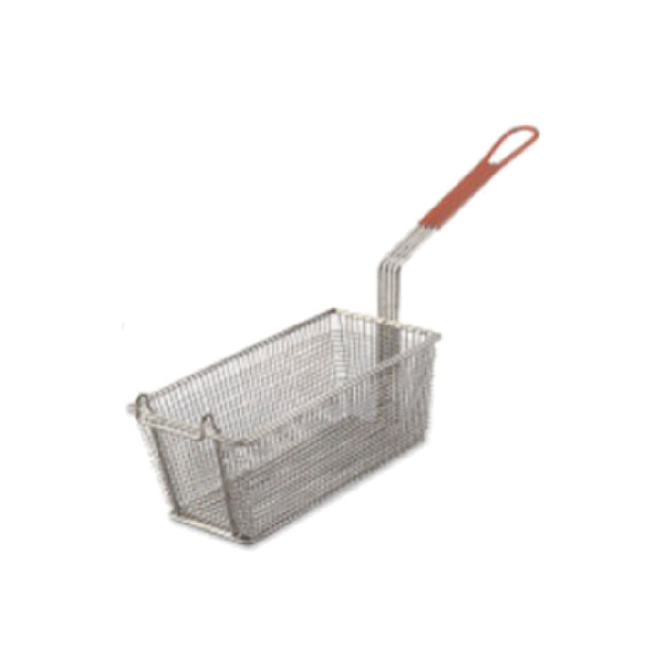Browne USA Foodservice, 79207, Fry Basket, 13" x 5-1/2" x 5-1/2"", rectangular, red handle, single wire construction, nickel-plated