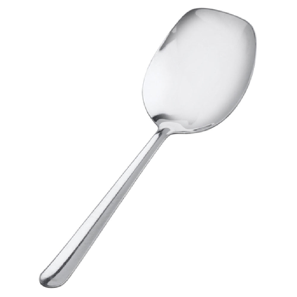 Comparing to similar serving utensils, the Browne Foodservice 817 distinguishes itself through a solid, all-stainless steel design with a mirror finish and a sturdy, stamped construction that ensures longevity and pathogen resistance. Its lightweight, ergonomic handle enhances handling and simplifies cleaning, supporting sanitation standards and operational efficiency in commercial settings. Designed for consistent performance, it offers a reliable, restaurant-ready option for professional food service environments requiring durable, easy-to-maintain tools.
