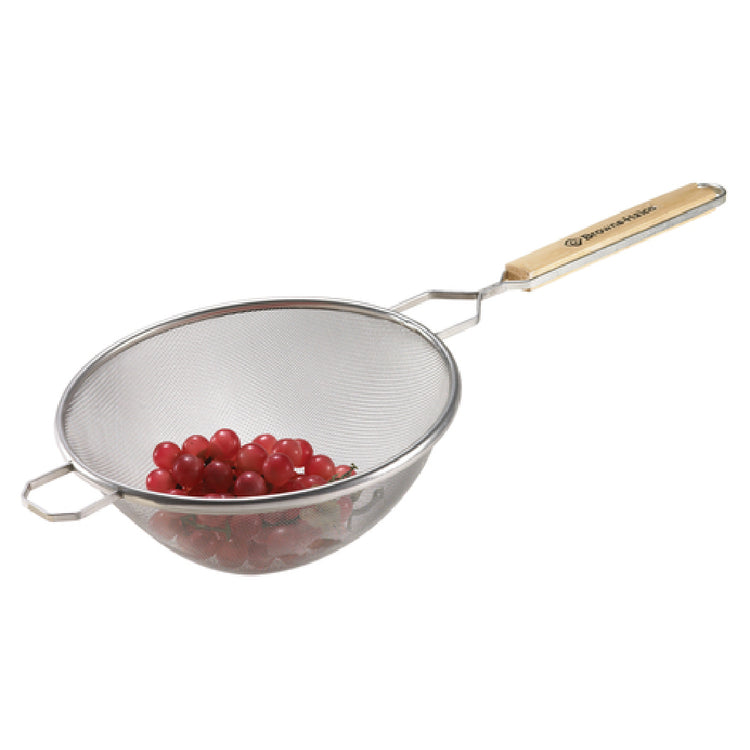 Browne Foodservice 9096 7-4/5 Inch Bowl Single Fine Mesh Strainer with Wood Handle