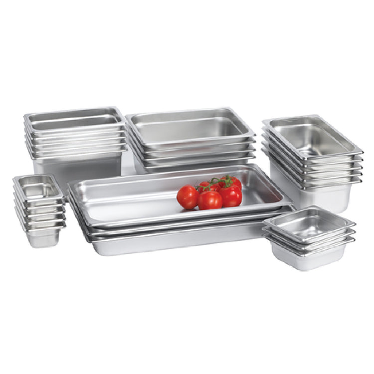 A commercial steam table pan is a foodservice container used to hold, heat, and serve hot foods in buffet or catering settings. These pans are typically constructed from durable stainless steel, facilitating quick cleaning and long-term use. They are designed to fit seamlessly into steam tables and holding units, providing even heat distribution and portion control. The Browne Foodservice 98134 Steam Table Pan 1/3 Size 10.1 Qt. is an example of a standard 1/3 size pan ideal for high-volume food presentation in institutional kitchens, cafeterias, and catering operations, supporting efficient workflow and maintaining food quality over service periods.