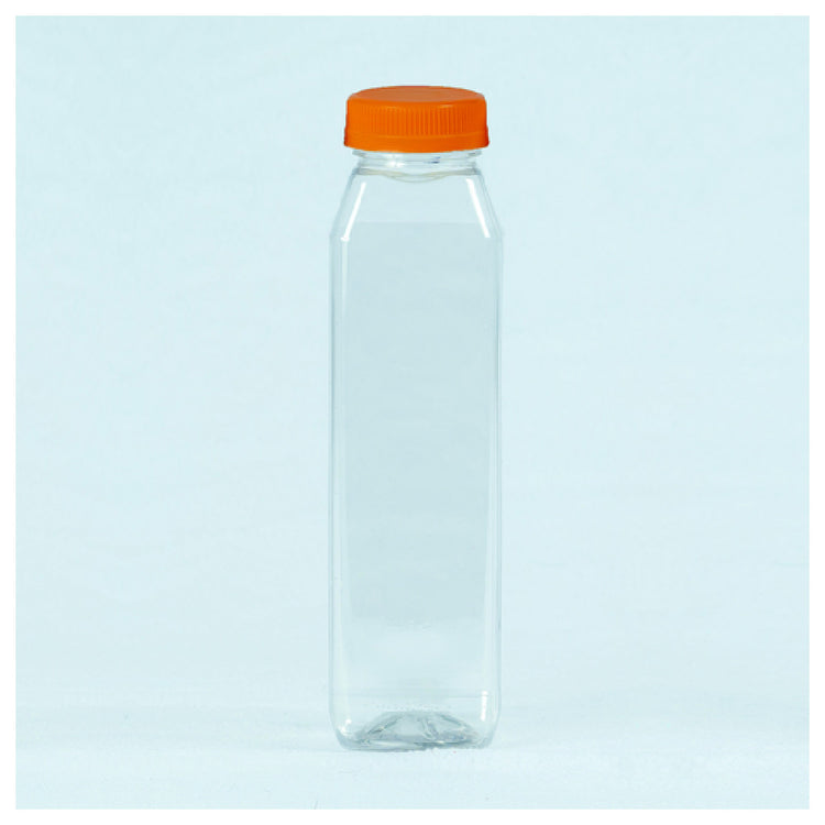 The Buccaneer Container Corp 31510120601 (Buccaneer) Juice Bottles 12 Oz. Tall are high-quality, clear PET plastic beverage containers designed for commercial foodservice and beverage applications. These 12 oz. tall, square-shaped, empty bottles are suitable for storing and serving juices, smoothies, or other liquids in professional environments. Their precise dimensions and sturdy construction facilitate easy filling, dispensing, and transportation. Customizable with printed labels, they support branding needs, while the included orange lids ensure secure sealing. Crafted for durability and ease of maintenance, these bottles are an optimal solution for hospitality, catering, or restaurant service operations seeking uniform, reliable drink presentation.