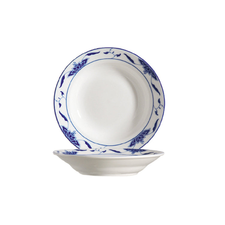 CAC China 103-38 8 Oz Blue Lotus Soup Plate 8 Inch Diameter Porcelain - 3 Dozen/Case