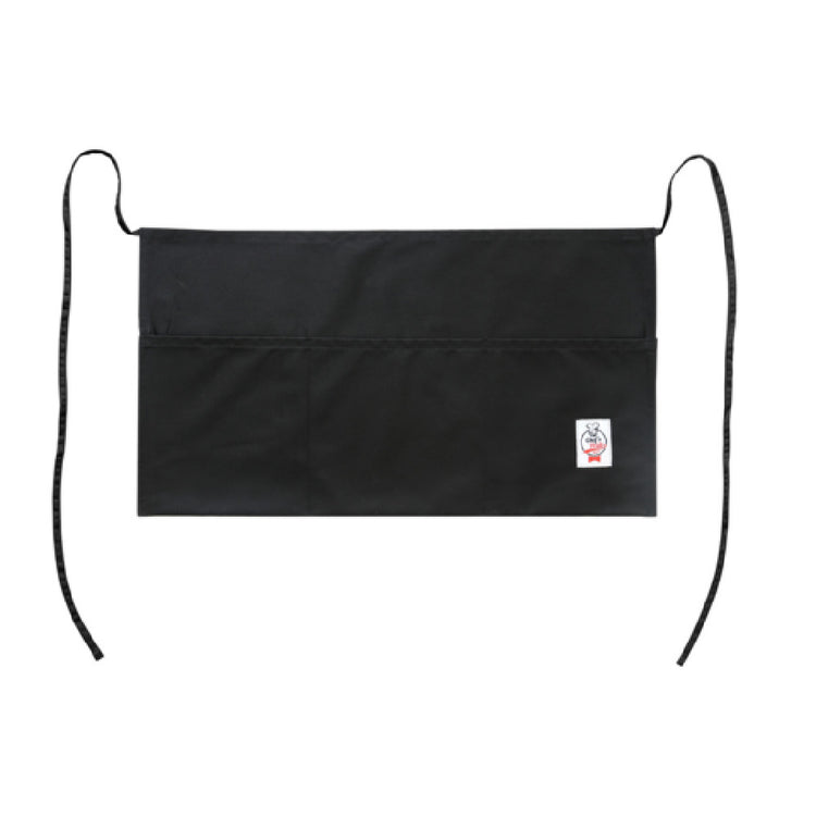 The CAC China APWA-1K Chef's Pride Waist Apron is a professional-grade textile designed for commercial foodservice environments, measuring 21-7/8 inches in length and 12-1/2 inches in width. Crafted from a durable 65/35 poly/cotton blend, this black waist apron offers resistance to frequent wash cycles while maintaining color integrity. Its construction includes waist ties for adjustable fit and three storage pockets, facilitating convenient access to essential tools and utensils. Ideal for restaurant kitchens, catering operations, and hospitality settings, this apron combines functionality with resilience, supporting high-volume workflow demands in demanding culinary environments.