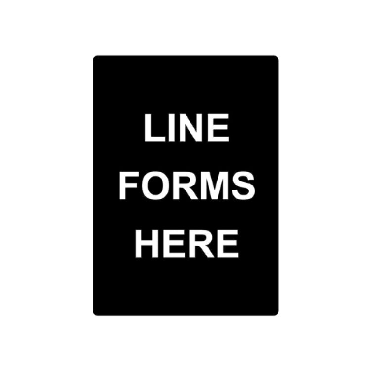 The CAC China CCSN-LN3 "Line Forms Here" double-sided stanchion sign offers clear, visual queue guidance for retail and hospitality settings. Its white-on-black print provides excellent contrast for immediate recognition, while its double-sided design maximizes visibility. Constructed from sturdy, weather-resistant materials, it withstands regular cleaning and handling in commercial environments. Designed for quick installation on existing stanchions, this sign supports streamlined crowd management and improves operational flow during peak hours. Its precise dimensions facilitate compatibility with standard crowd control fixtures, making it suitable for high-volume foodservice operations.