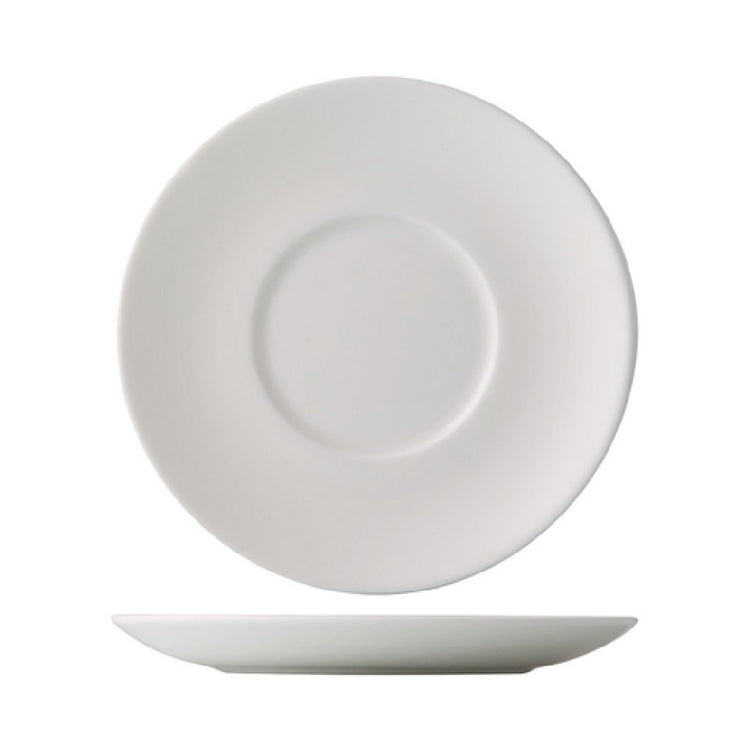 A commercial saucer is a durable, precisely sized dishware component designed to support hot beverages and small entrées in foodservice environments. Made from high-quality porcelain, it features a stable, vitrified construction capable of withstanding frequent dishwashing and temperature variations. The CAC China EVT-36 Everest Saucer is installed in cafes, hotel restaurants, and catering operations to ensure consistent presentation and operational efficiency, particularly in settings with moderate throughput and high sanitation standards.