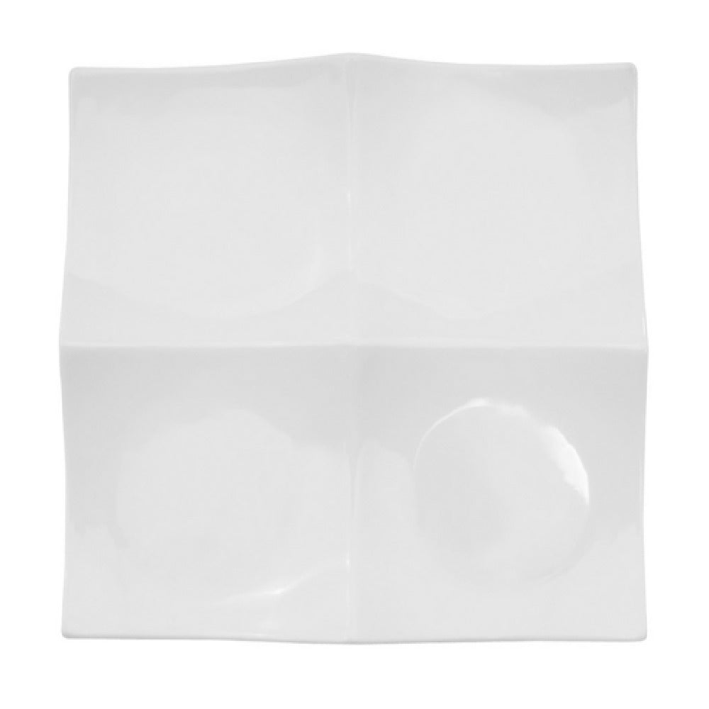 CAC China, F-P16, Fortune Divided Plate, 10"L x 10"W x 1"H, square, 4-compartments, dishwasher, oven and microwave safe, porcelain, Super White (Sold by case) (Packed By: 1 Dozen)