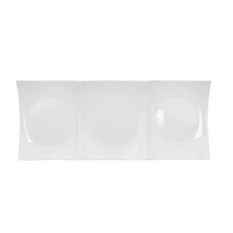 CAC China, F-P3, Fortune Divided Platter, 11-1/2"L x 5-1/2"W x 1"H, rectangular, 3-compartments, dishwasher, oven and microwave safe, porcelain, Super White (Sold by case) (Packed By: 2 Dozen Per Case)
