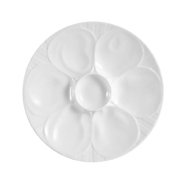 CAC China OYS-9 9 Inch Accessories Oyster Plate Porcelain with 7 Compartments - 2 Dozen/Case
