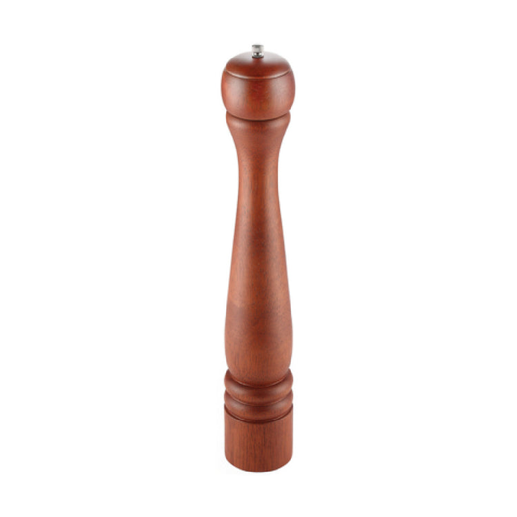 The CAC China PMW1-18BN pepper mill is engineered with a solid hardwood body finished in matte brown, measuring 18 inches in height for ergonomic handling. Its metal grinding mechanism provides high durability and precision, designed for commercial use with an adjustable coarseness setting. The model operates without electrical requirements, supporting typical workspace setup. It is built with food-safe materials compatible with frequent cleaning, and its construction resists wear and environmental stresses common in busy foodservice environments. Weighing approximately 4.5 lbs, this product supports efficient workflow integration without sacrificing longevity or performance.