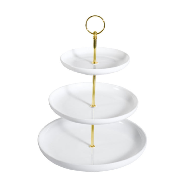 The CAC China PTE-C3 Catering Collection Serving Tray offers a versatile, durable porcelain construction that supports high-volume food presentation. Its stackable, three-tier design enhances workflow efficiency by consolidating display space, while microwave, oven, and dishwasher safety simplifies maintenance. Ideal for catering, buffet lines, and display services, its rounded shape ensures stability for a variety of food items and decorations. The stand is designed with expert durability traits, supporting frequent use in demanding foodservice environments with ease of cleaning and handling.