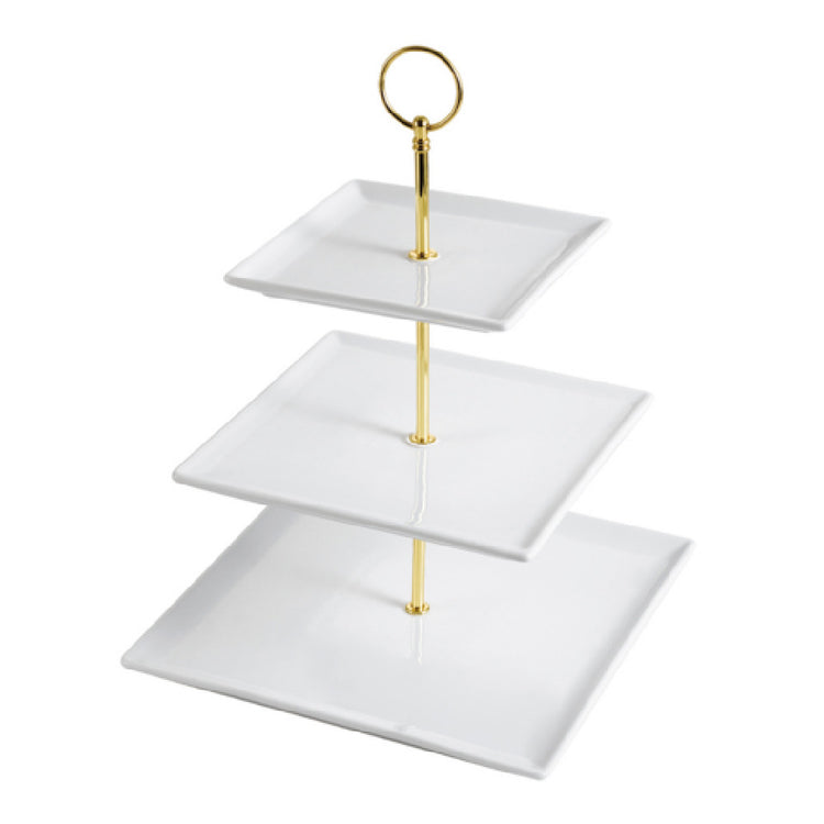 CAC China PTE-SQ3 10 Inch Square 3-tier Serving Tray Porcelain White - 8/Case