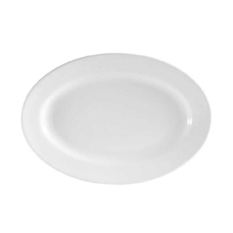 CAC China RCN-14 13 Inch Oval Platter Rolled Edge Porcelain Super White - 1 Dozen