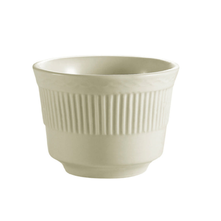 The CAC China RID-4 Ridgemont Bouillon Cup is a commercial-grade ceramic serving vessel designed for precise food presentation and durable service. Holding 7 ounces, it measures 3-3/8 inches in diameter and 2-1/2 inches in height, making it suitable for upscale restaurants, catering, and institutional foodservice operations. Crafted from high-quality stoneware, this round embossed cup is dishwasher, oven, and microwave safe, ensuring efficient cleanup, reheating, and versatile use in busy kitchen environments.