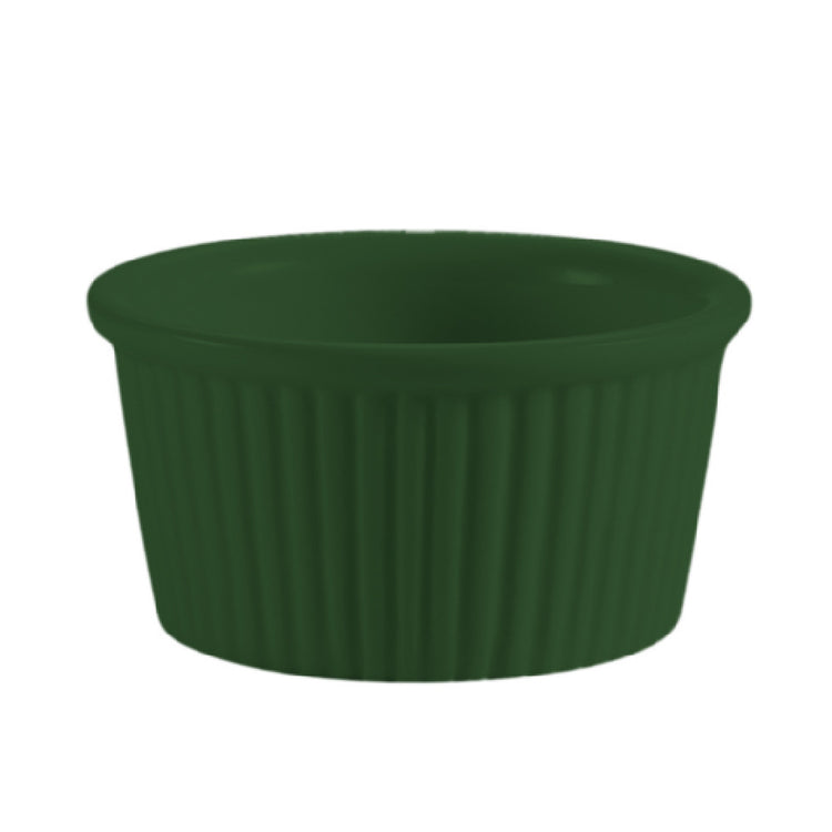 CAC China RKF-4-G 4 Oz. Ramekin Round Fluted Green Ceramic with Dishwasher Safe - 4 Dozen/Case