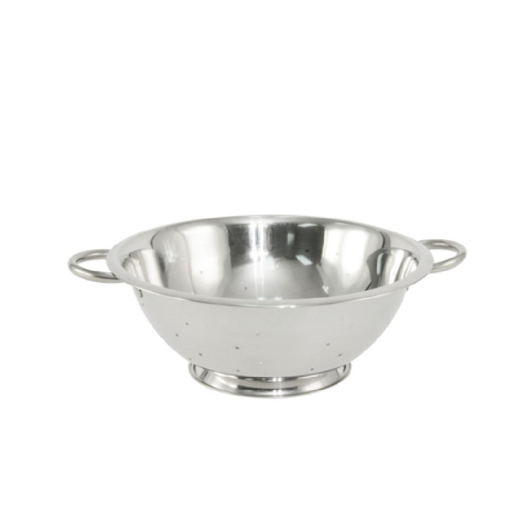 CAC China, SMCD-5, Colander, 5 qt., 11-5/8" dia. x 3-7/8"H, handled, footed, stainless steel (Packed By: 24 Each Per Case)