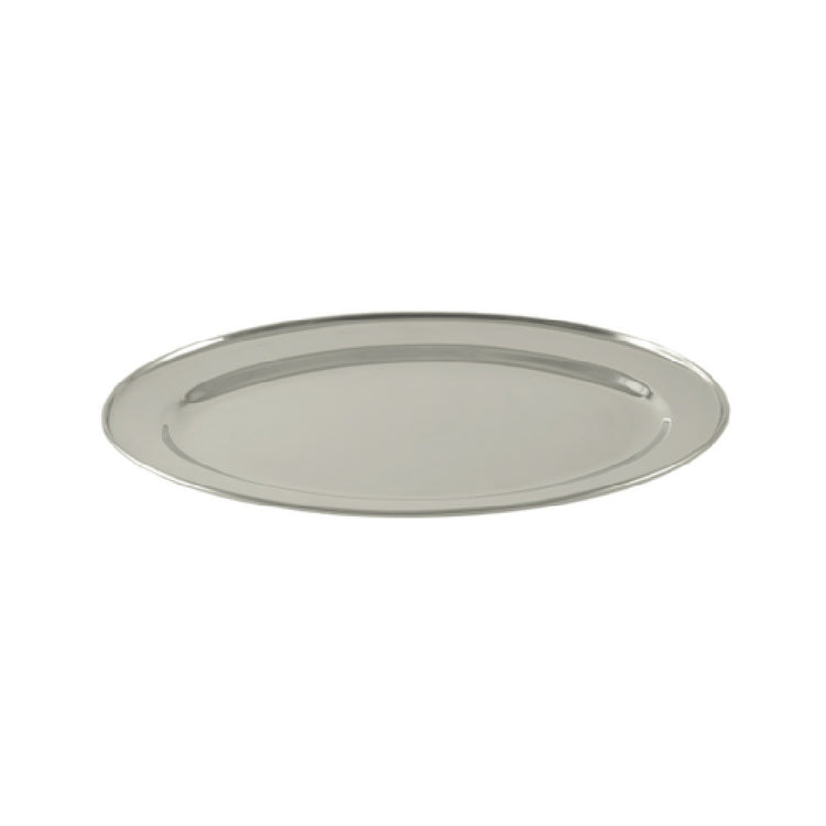 Compared to similar stainless steel platters, this model offers exceptional durability, corrosion resistance, and a large oval surface ideal for versatile presentation. Its heavy-duty construction and straightforward cleaning support high-volume, fast-paced foodservice settings. The stainless steel finish enhances both hygiene and aesthetic appeal, providing a restaurant-ready appearance that withstands frequent sanitizing. The sizing and shape streamline service workflows, making it a practical, reliable choice for commercial kitchens seeking quality serveware with excellent operational lifespan.