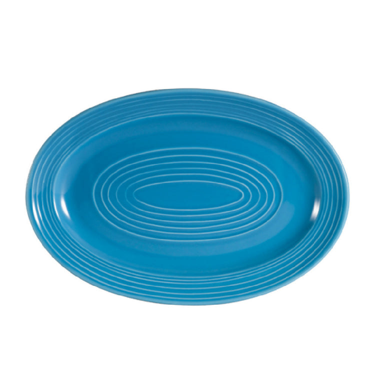 A commercial serving platter is a professionally designed dishware item intended for high-volume foodservice operations. Constructed from durable materials such as porcelain or ceramic, it supports frequent use in restaurants, catering, or buffet settings. The CAC China Tango Platter, with its embossed rim and oval shape, is designed to enhance presentation and withstand rigorous cleaning cycles. Its dimensions, weight, and reheating capabilities make it suitable for delivering appetizers, main courses, or desserts in moderate-volume settings, ensuring reliable performance and consistent appearance throughout service periods.